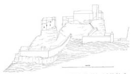 Dessin de reconstitution du Wasigenstein à la fin du Moyen Age. Dessin de Th. Biller.